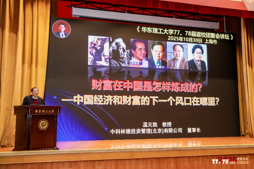 大会特别邀请中国著名经济学家温元凯教授作分享。作为1977年邓小平同志主持的科学和教育工作座谈会参与者,温元凯教授在八十年代,曾多次来华理为师生做报告。此次他以《中国经济和财富的下一个风口在哪里?》为题,解析时代趋势,其宏阔视野与深刻洞察赢得阵阵掌声。