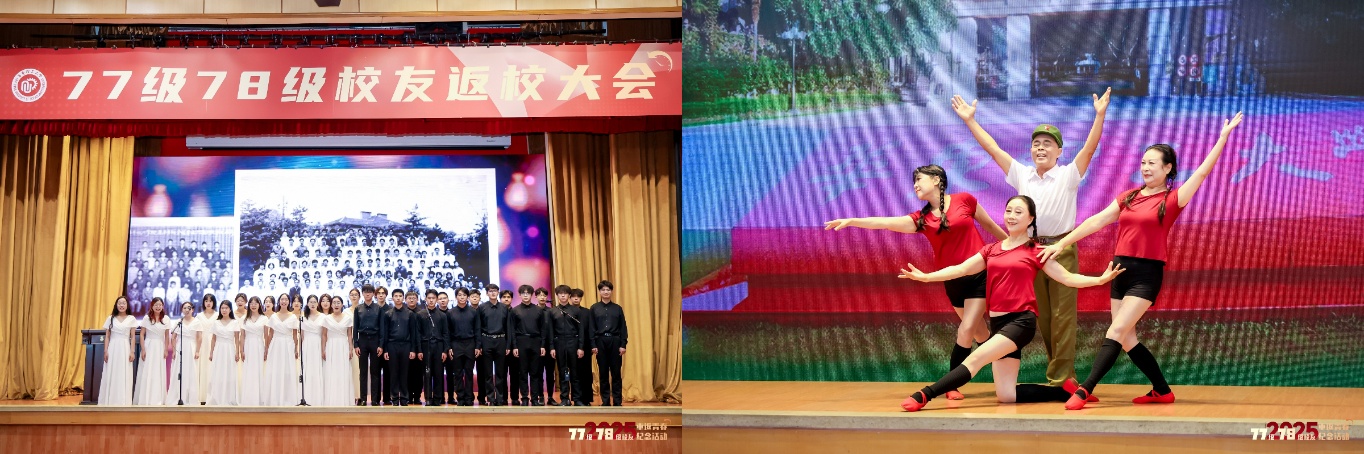 大会开始前,校“伊卡斯特合唱团”带来歌曲联唱, 77、78级校艺术团成员带来舞蹈《芳华》,为这场跨越四十余载的相聚增添别样温情。