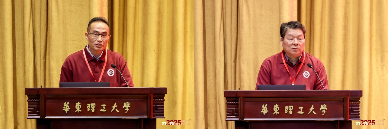 校友代表分享饱含深情与担当。李永舫回忆了求学期间的难忘经历与科研探索历程,对母校的培育表达感激。他谈及从乡村学子到学术大家的成长,正是以“热爱、用心、努力、认真”为内核动力,才实现理论突破与技术创新,为校友们传递科研与人生的宝贵启示。钱旭红则以《启航 1978》为题,重温在母校的求学时光,讲述从华理学子到高校校长的成长轨迹,其强调的“思维自由与全面发展”教育观,引发在场校友的深刻思考。